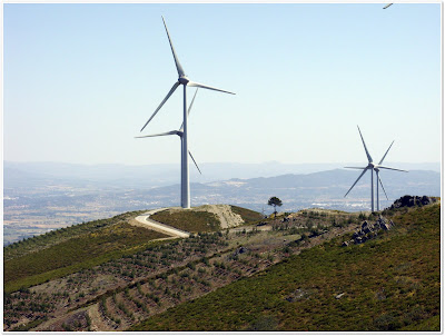 Dalí pedalámos quase sempre na companhia das enormes eólicas, transpondo as Serras do Candal e da Maunça, onde começámos a descer para o Alqueidão e Dornelas do Zêzere, ode chegámos após atravessarmos o Rio.