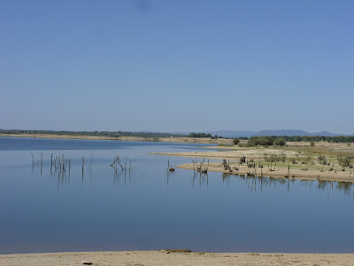 Ornamentada aqui e acolá por alguns pescadores, a barragem, agora com a cota bastante baixa, tem paisagens ainda mais belas pelos recortes mais acentuados e os paus completamente despidos que assomam naquelas àguas calmas e espelhadas de nuvens e sombras que lhe davam ainda mais beleza.